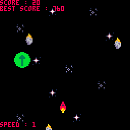 - New settings panel on the menu ! You can now change your spaceship speed, and the meteorite’s starting speed.
